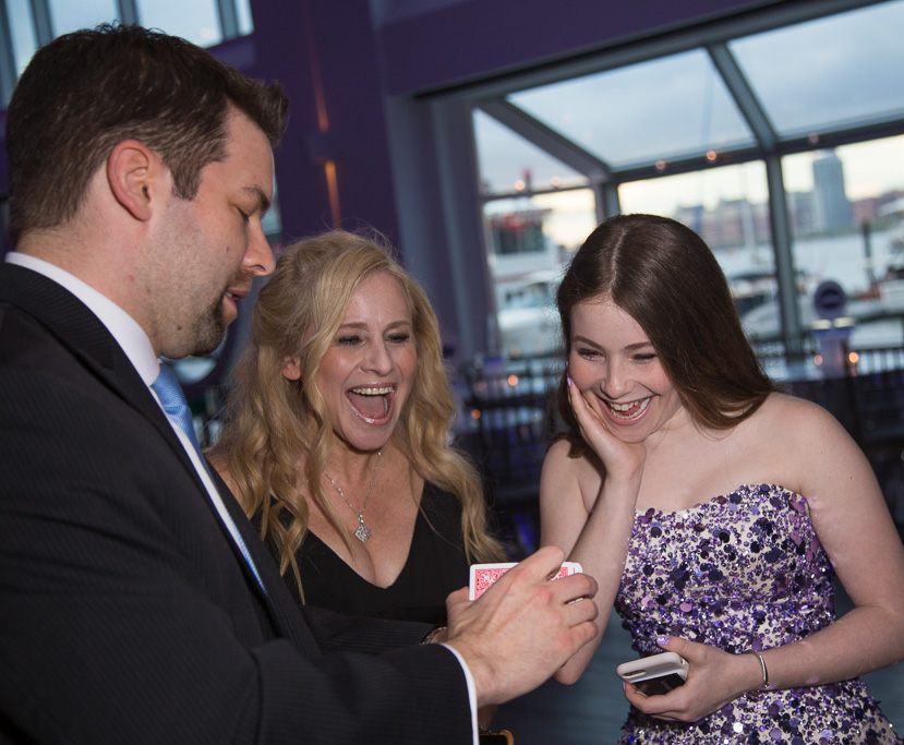 Absolutely. David creates a one-of-a-kind illusion just for them—something no one else at the party gets. One of his favorites is a customized deck of cards featuring their name in an unforgettable trick, which they get to keep as a memento. It’s a small detail, but one that makes the night feel even more personal. Check out some of these reactions!
