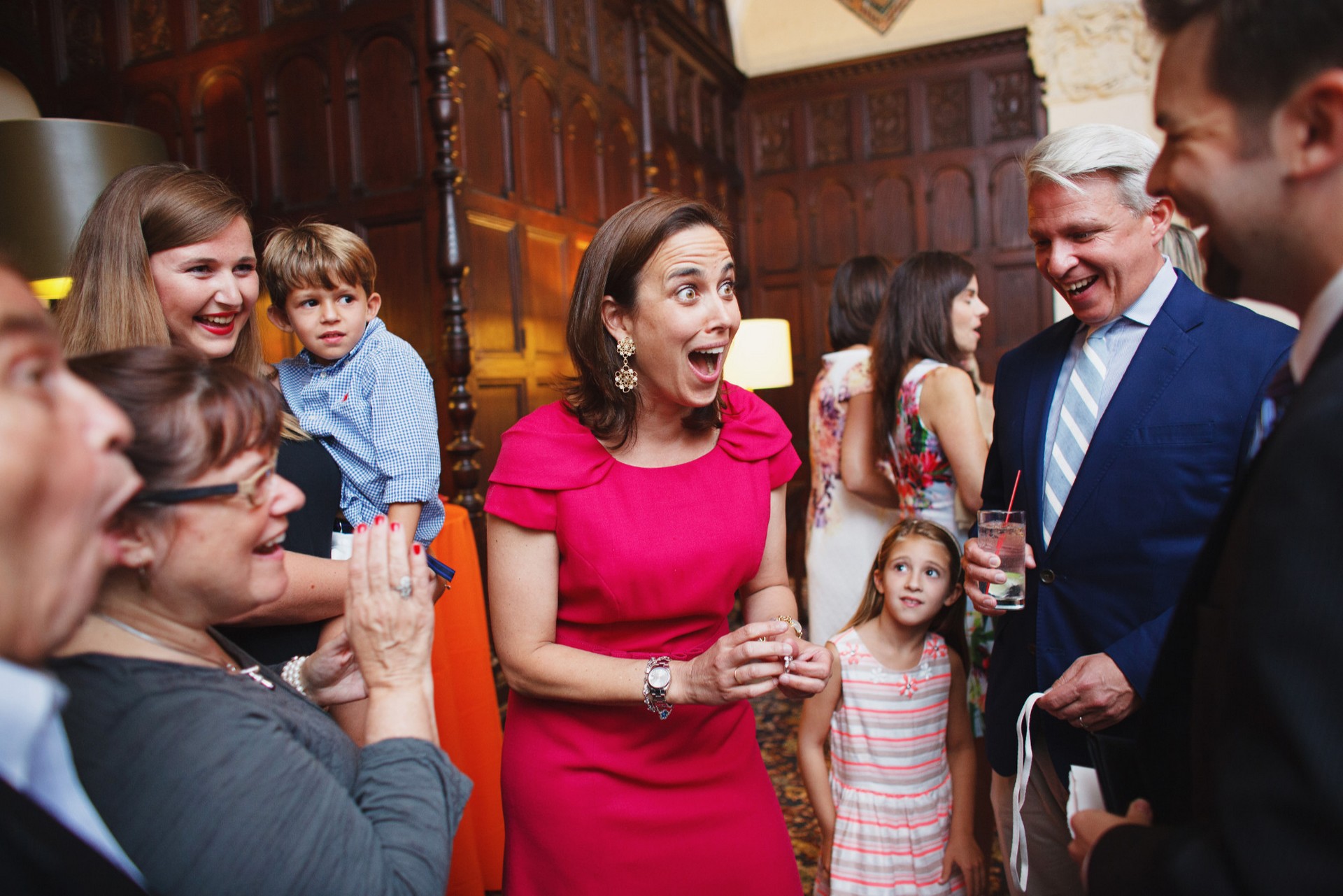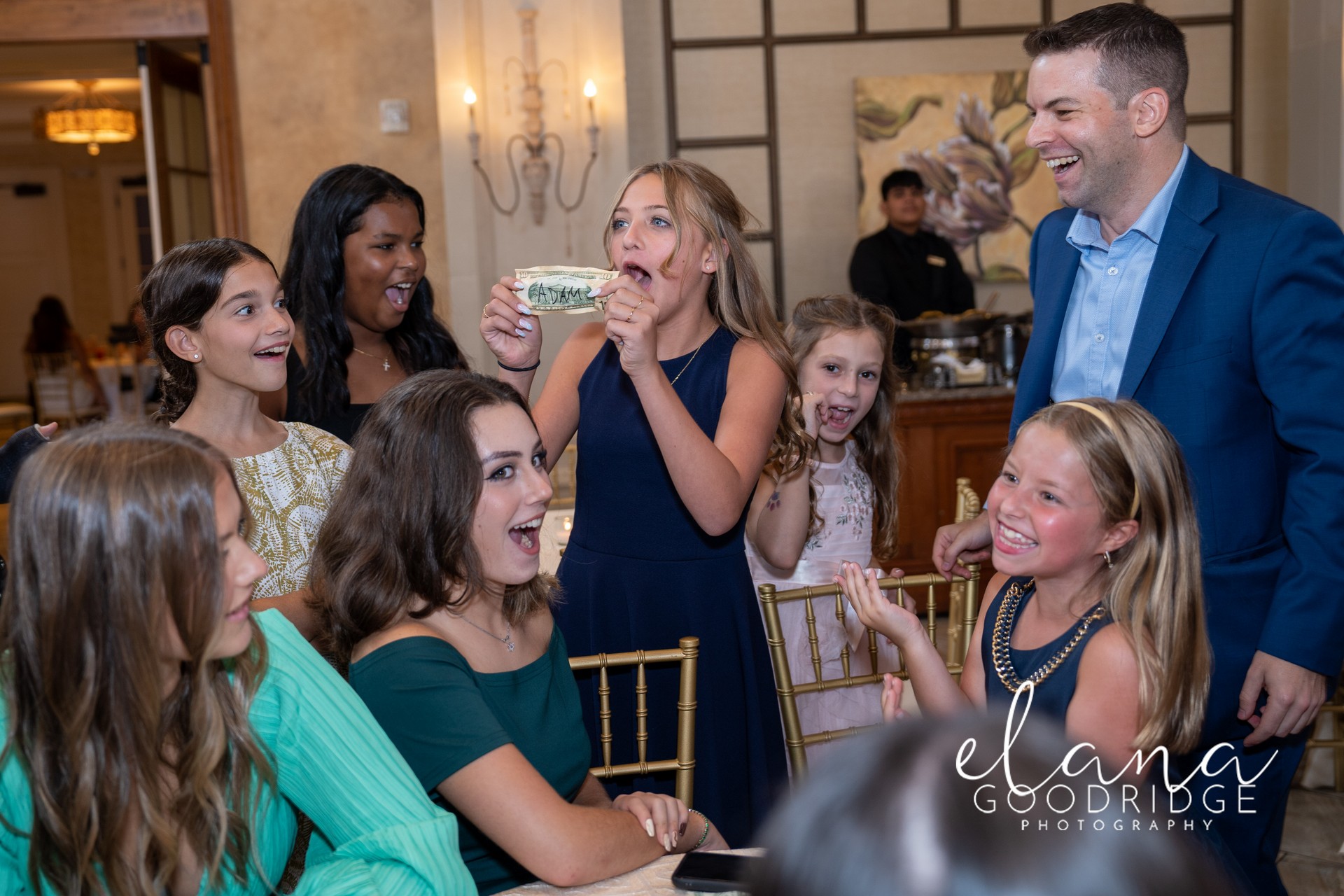 Laughter, gasps, kids shouting, “NOOOO WAAAY!” while the adults are doubled over, “You've GOT to be kidding me!!” The whole room shifts—even before the first toast. Classmates, cousins from out of town, parents who just met—all suddenly caught up in the same shock and delight.