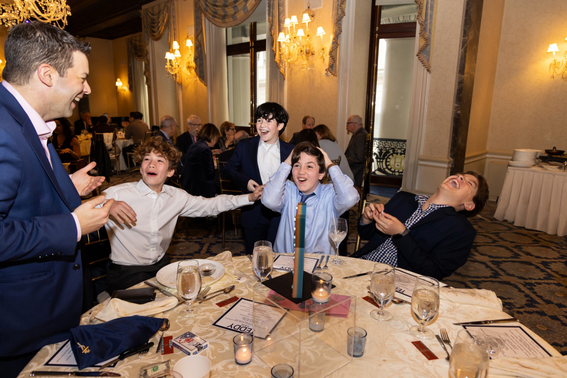 Laughter, gasps, kids shouting, “NOOOO WAAAY!” while the adults are doubled over, “You've GOT to be kidding me!!” The whole room shifts—even before the first toast. Classmates, cousins from out of town, parents who just met—all suddenly caught up in the same shock and delight.